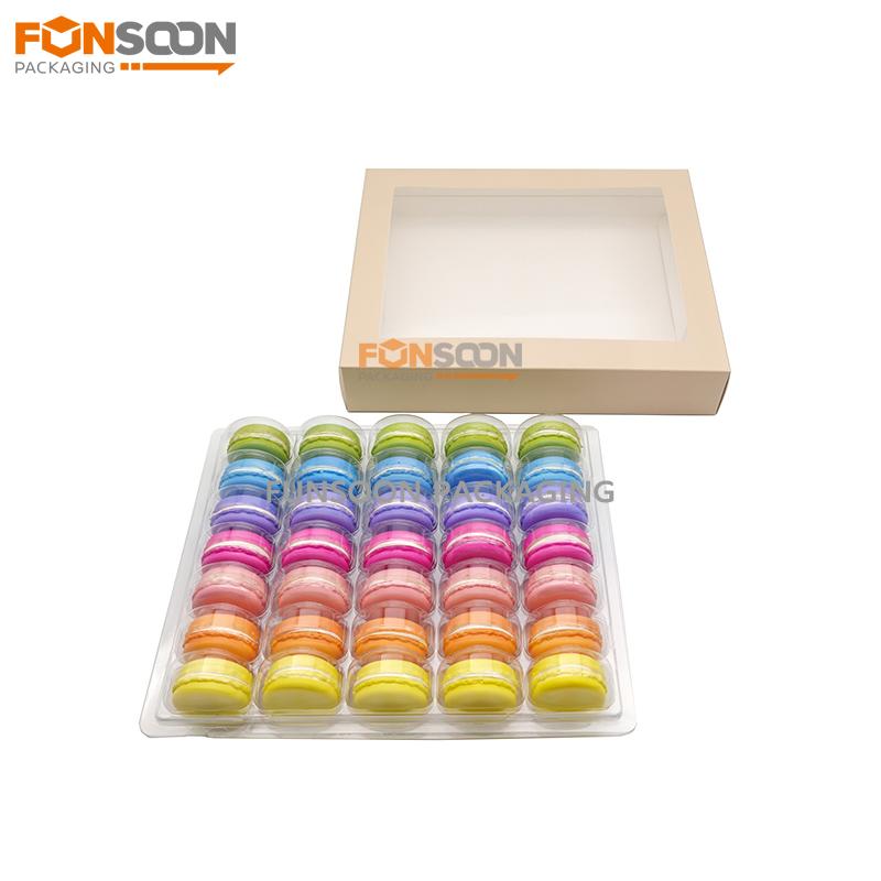 Boîtes d'emballage en plastique transparentes de biscuit de macarons en gros avec le plateau d'insertions Lire la suite