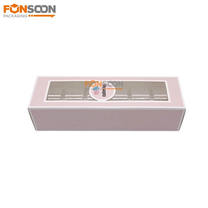 Boîte d'emballage pliable en papier pour 6 macarons avec fenêtre transparente |