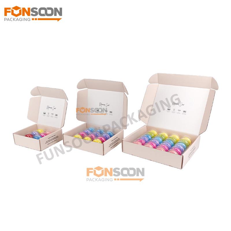 Coffret cadeau d'expédition en carton ondulé imprimé personnalisé de 24 paquets de biscuits macaronsSuivant: