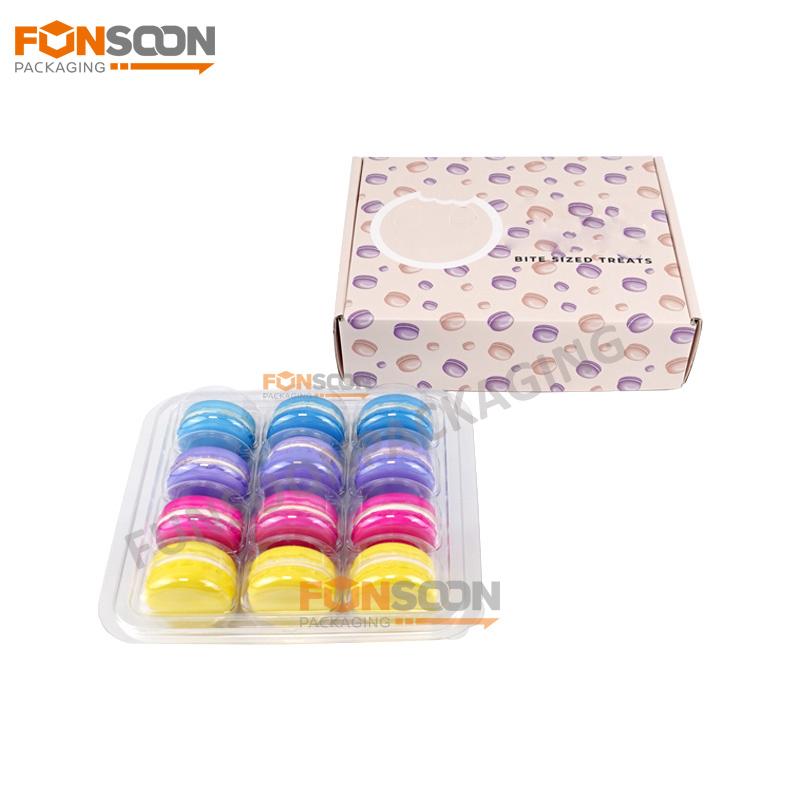 Boîtes d'emballage en plastique transparentes de biscuit de macarons en gros avec le plateau d'insertions Lire la suite