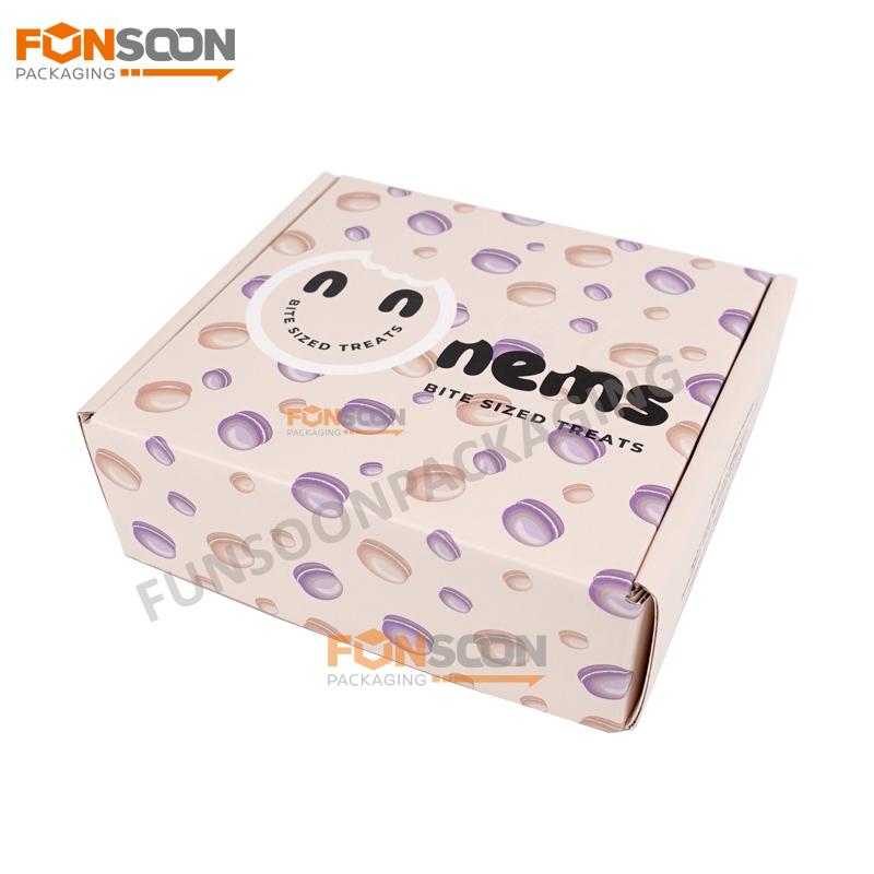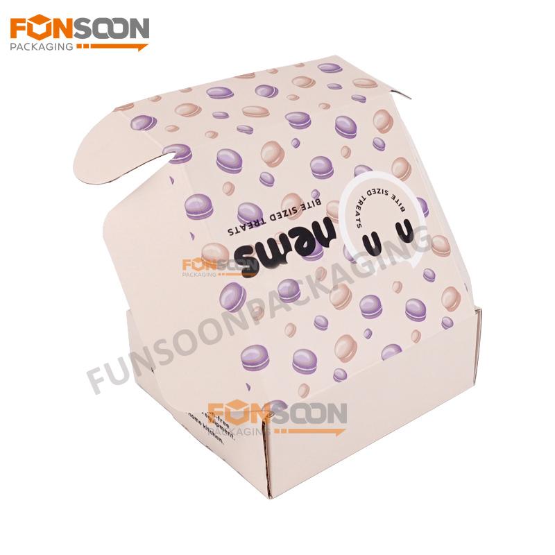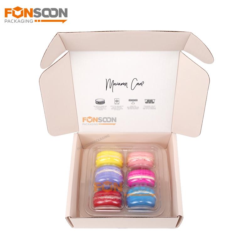 Le boîte d'expédition postale Fabriqué en carton ondulé E-Flute, recyclable et dégradable, ce carton complet permet d'emballer efficacement les macarons pendant le transport. Nous pouvons personnaliser les dimensions, l'impression et le design de la boîte selon vos besoins.