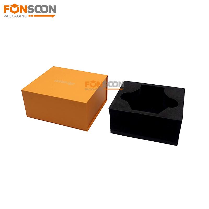 Contrairement aux cartons pliables, cette boîte rigide est livrée entièrement assemblée avec un insert en mousse EVA découpé sur mesure aux dimensions exactes de votre produit. Ce système assure un maintien parfait et sécurisé, protégeant ainsi la verrerie délicate et autres produits fragiles des chocs et des rayures pendant le transport. La cavité profonde et sur mesure en mousse enveloppe votre article avec douceur et sécurité, vous garantissant une livraison impeccable – un atout majeur pour les marques soucieuses de la qualité et de la satisfaction client.